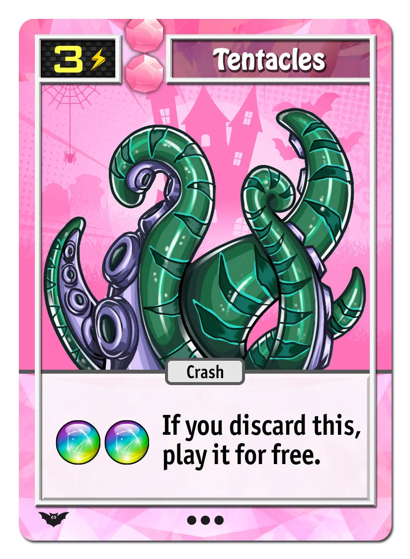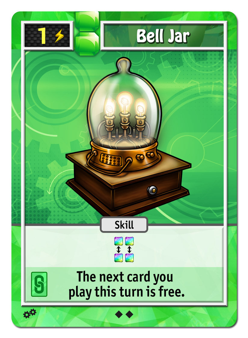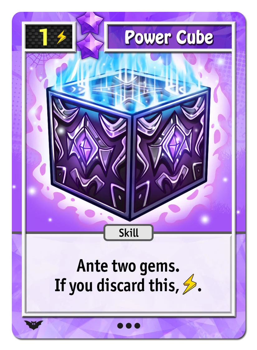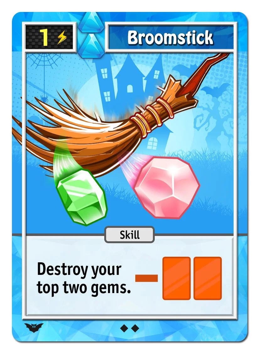 Gem cards are set of 5 cards per gem color that let you augment and adjust your character. Want a bit more damage and projectiles? The red gem will help. Want a more super cards and super meter? The green gem will help, and so on.