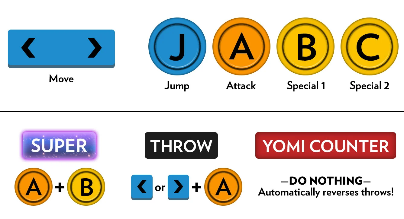 Fighting games have added a huge amount of complexity over the years in ways have created more and more of a physical execution barrier. Fantasy Strike is about getting to the strategy part of the game immediately, in the first minute you play it. No complex motions for special moves and no need to practice combos in training mode. Emphasizing player-decisions over difficult dexterity is a much deeper commitment than simply letting you do special moves easily—it's a commitment to avoid fiddly, unintuitive, difficult-to-execute techniques throughout the game. If you don't know what plinking, kara cancels, option selects, charge partitioning, FADCs, or crouch techs are, you don't have to. Instead you can focus on the fundamentals of fighting games: distancing, timing, zoning, setups, reads, and strategy.